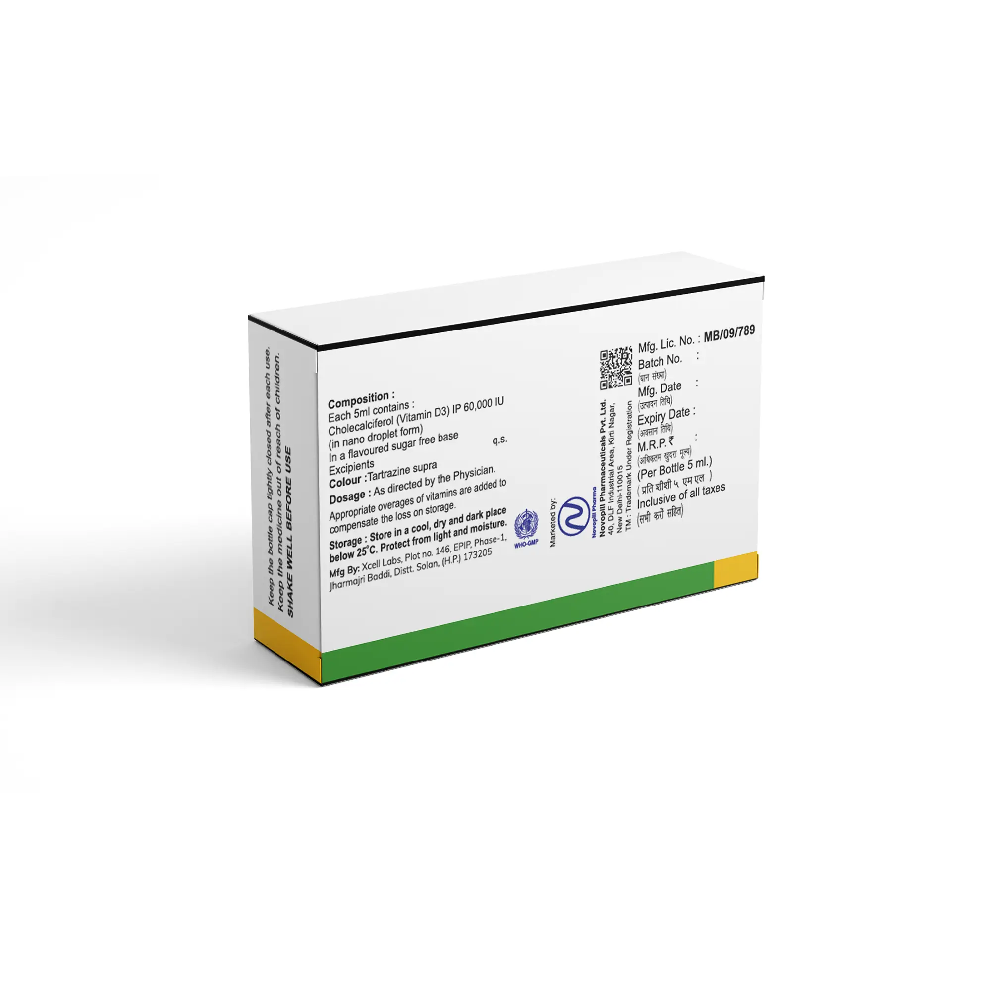Generic Name: Vitamin D3 Oral Solution 60,000 IU/5ml